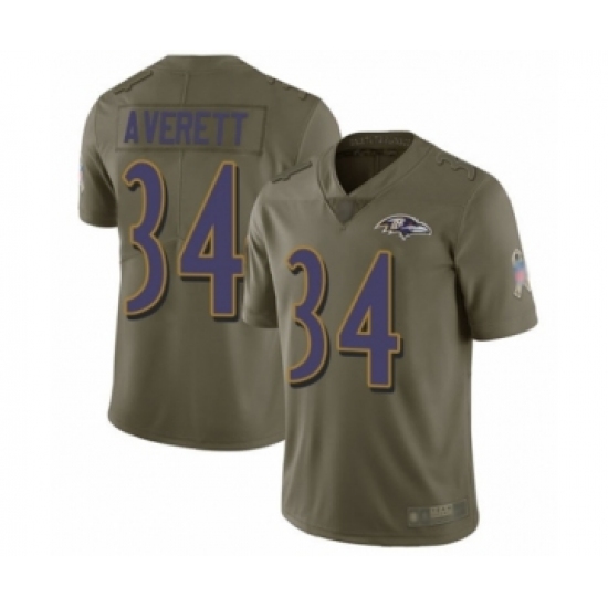 >Youth Baltimore Ravens #34 Anthony Averett Limited Olive 2017 Salute to Service Football Jersey