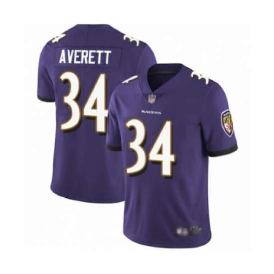 >Youth Baltimore Ravens #34 Anthony Averett Purple Team Color Vapor Untouchable Limited Player Football Jersey