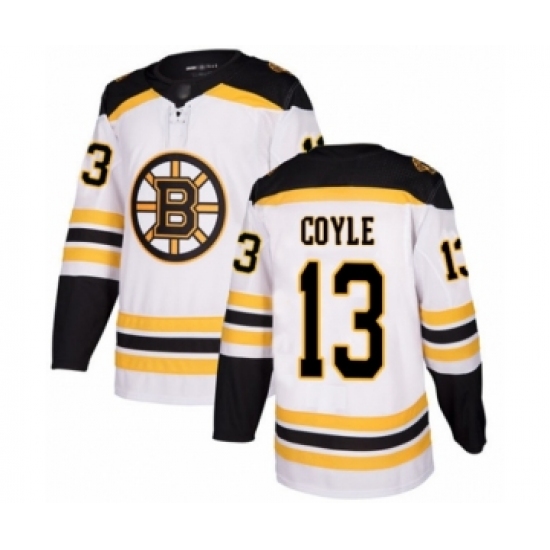 Men's Boston Bruins #13 Charlie Coyle Authentic White Away Fanatics Branded Breakaway 2019 Stanley Cup Final Bound Hockey Jersey