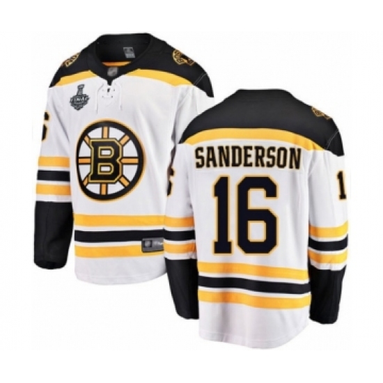 Men's Boston Bruins #16 Derek Sanderson Authentic White Away Fanatics Branded Breakaway 2019 Stanley Cup Final Bound Hockey Jersey