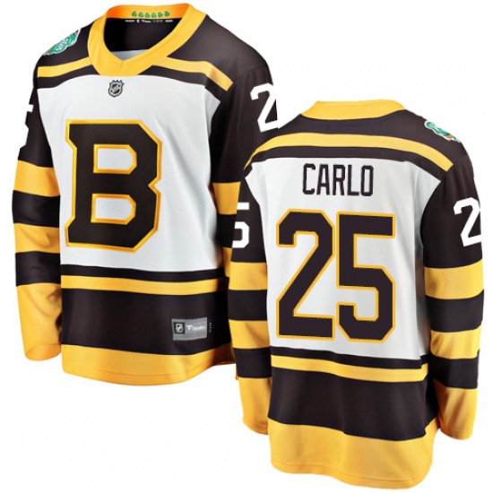 >Youth Boston Bruins #25 Brandon Carlo White 2019 Winter Classic Fanatics Branded Breakaway NHL Jersey