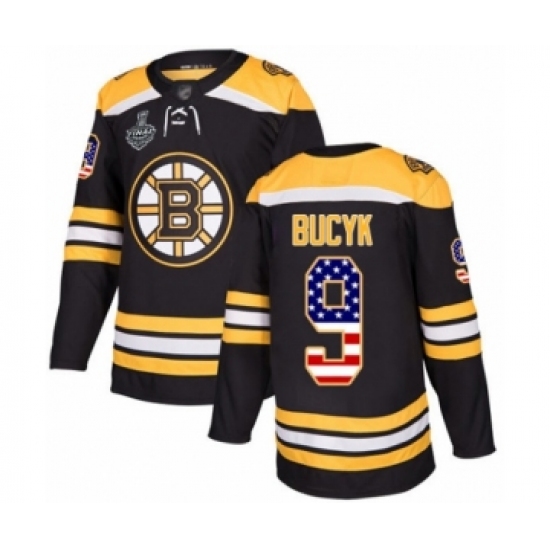 Youth Boston Bruins #9 Johnny Bucyk Authentic Black USA Flag Fashion 2019 Stanley Cup Final Bound Hockey Jersey