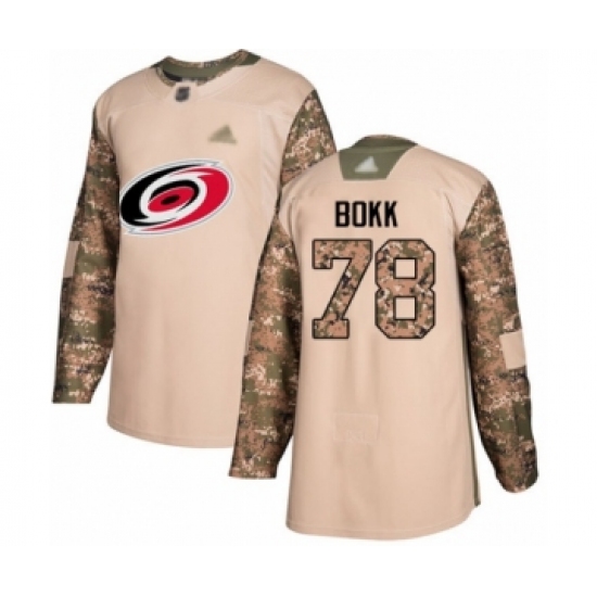 >Youth Carolina Hurricanes #78 Dominik Bokk Authentic Camo Veterans Day Practice Hockey Jersey