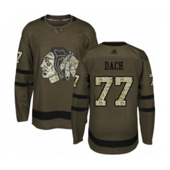 Men's Chicago Blackhawks #77 Kirby Dach Authentic Green Salute to Service Hockey Jersey