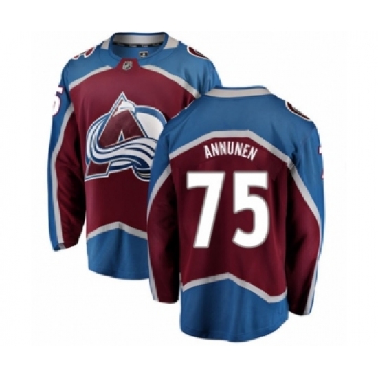 >Youth Colorado Avalanche #75 Justus Annunen Authentic Maroon Home Fanatics Branded Breakaway NHL Jersey