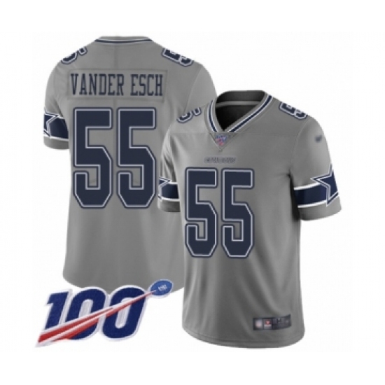>Youth Dallas Cowboys #55 Leighton Vander Esch Limited Gray Inverted Legend 100th Season Football Jersey