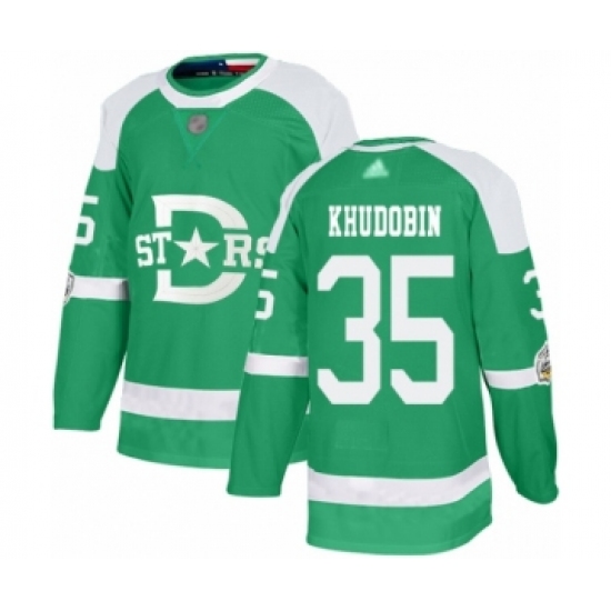 >Youth Dallas Stars #35 Anton Khudobin Authentic Green 2020 Winter Classic Hockey Jersey