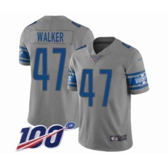 >Youth Detroit Lions #47 Tracy Walker Limited Gray Inverted Legend 100th Season Football Jersey