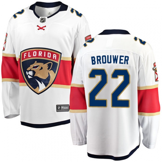 >Youth Florida Panthers #22 Troy Brouwer Authentic White Away Fanatics Branded Breakaway NHL Jersey