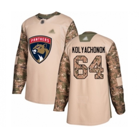 >Youth Florida Panthers #64 Vladislav Kolyachonok Authentic Camo Veterans Day Practice Hockey Jersey