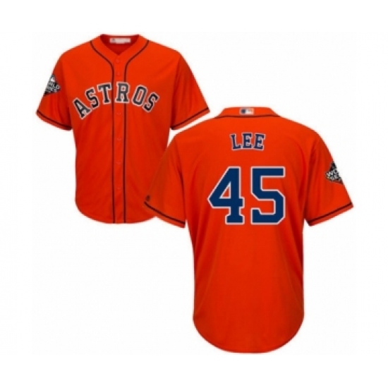 Youth Houston Astros #45 Carlos Lee Authentic Orange Alternate Cool Base 2019 World Series Bound Baseball Jersey