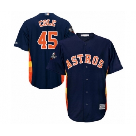 Youth Houston Astros #45 Gerrit Cole Authentic Navy Blue Alternate Cool Base 2019 World Series Bound Baseball Jersey