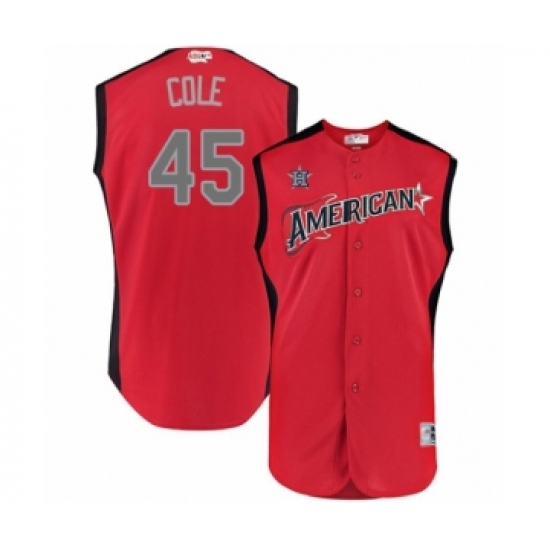 Youth Houston Astros #45 Gerrit Cole Authentic Red American League 2019 Baseball All-Star Jersey