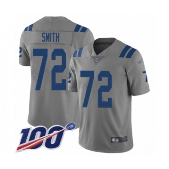 Men's Indianapolis Colts #72 Braden Smith Limited Gray Inverted Legend 100th Season Football Jersey