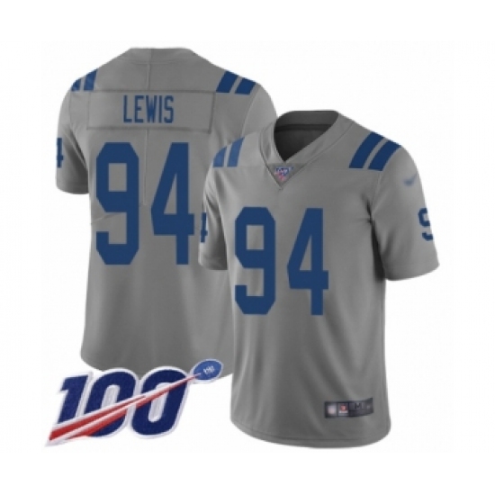 >Youth Indianapolis Colts #94 Tyquan Lewis Limited Gray Inverted Legend 100th Season Football Jersey