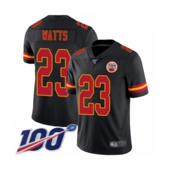 >Youth Kansas City Chiefs #23 Armani Watts Limited Black Rush Vapor Untouchable 100th Season Football Jersey