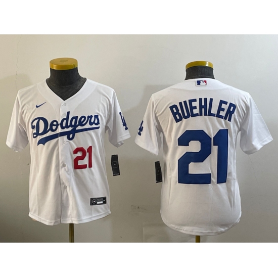 Youth Los Angeles Dodgers #21 Walker Buehler White Stitched Cool Base Nike Jersey