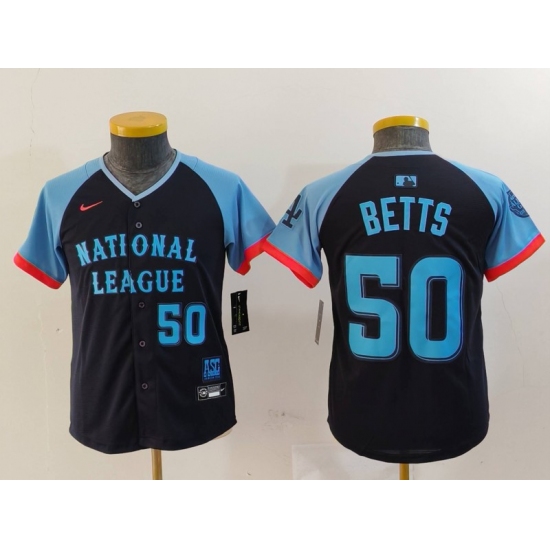 Youth Los Angeles Dodgers #50 Mookie Betts Number Navy 2024 All Star Limited Stitched Jersey