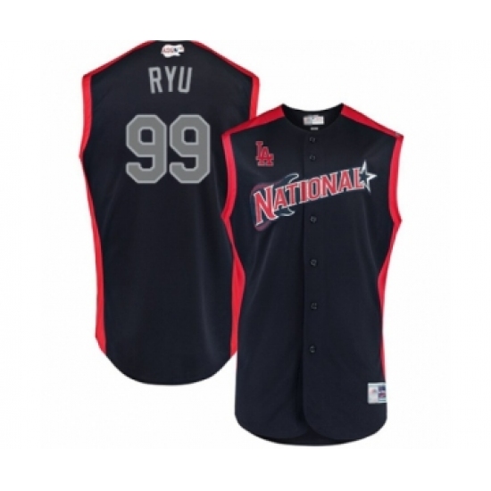 >Youth Los Angeles Dodgers #99 Hyun-Jin Ryu Authentic Navy Blue National League 2019 Baseball All-Star Jersey