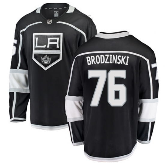 >Youth Los Angeles Kings #76 Jonny Brodzinski Authentic Black Home Fanatics Branded Breakaway NHL Jersey