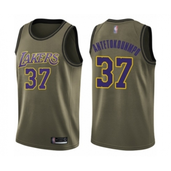 >Youth Los Angeles Lakers #37 Kostas Antetokounmpo Swingman Green Salute to Service Basketball Jersey