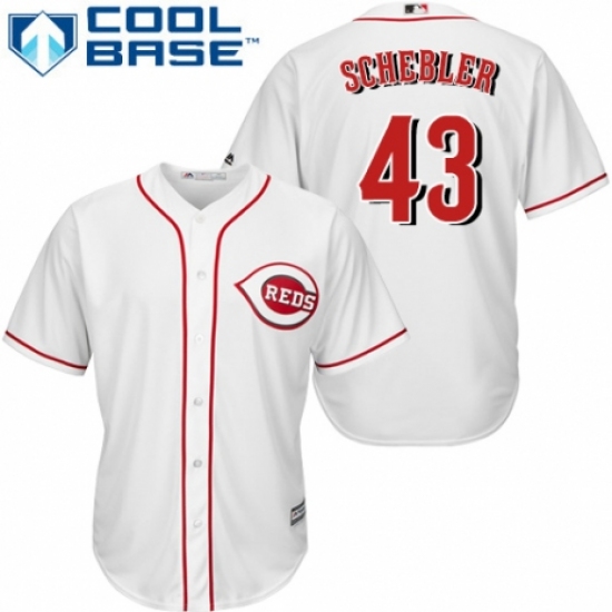 Youth Majestic Cincinnati Reds #43 Scott Schebler Authentic White Home Cool Base MLB Jersey