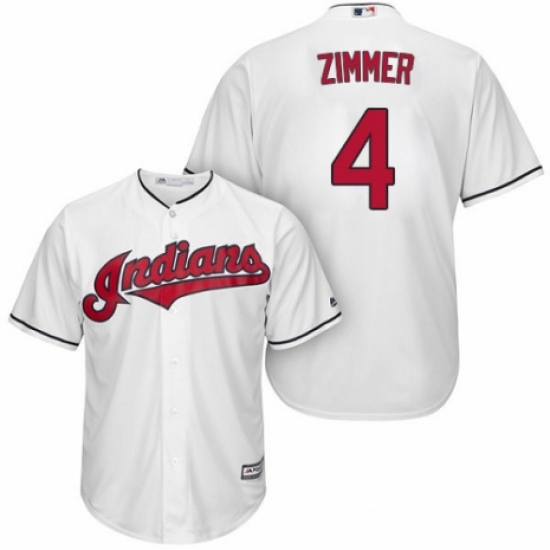 >Youth Majestic Cleveland Indians #4 Bradley Zimmer Replica White Home Cool Base MLB Jersey