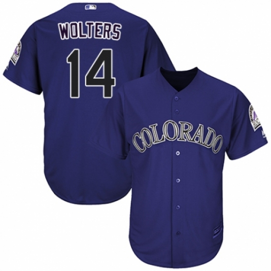 Men's Majestic Colorado Rockies #14 Tony Wolters Replica Purple Alternate 1 Cool Base MLB Jersey