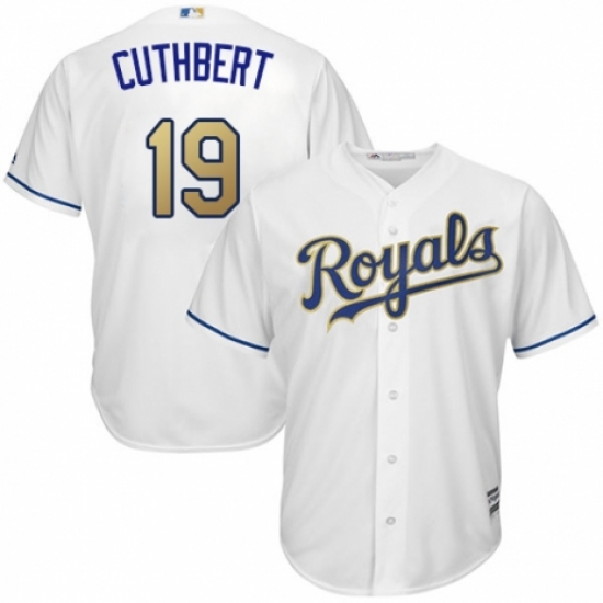 >Youth Majestic Kansas City Royals #19 Cheslor Cuthbert Authentic White Home Cool Base MLB Jersey