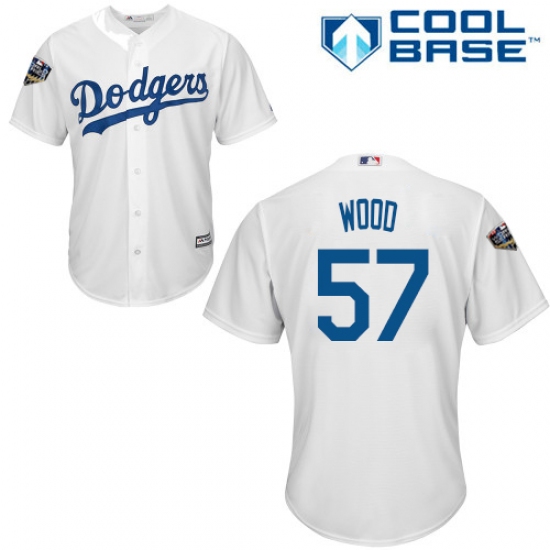 Youth Majestic Los Angeles Dodgers #57 Alex Wood Authentic White Home Cool Base 2018 World Series MLB Jersey