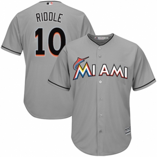 >Youth Majestic Miami Marlins #10 JT Riddle Authentic Grey Road Cool Base MLB Jersey