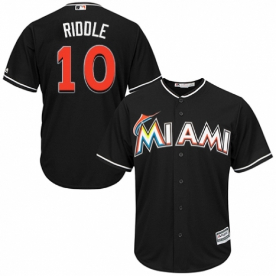 >Youth Majestic Miami Marlins #10 JT Riddle Replica Black Alternate 2 Cool Base MLB Jersey