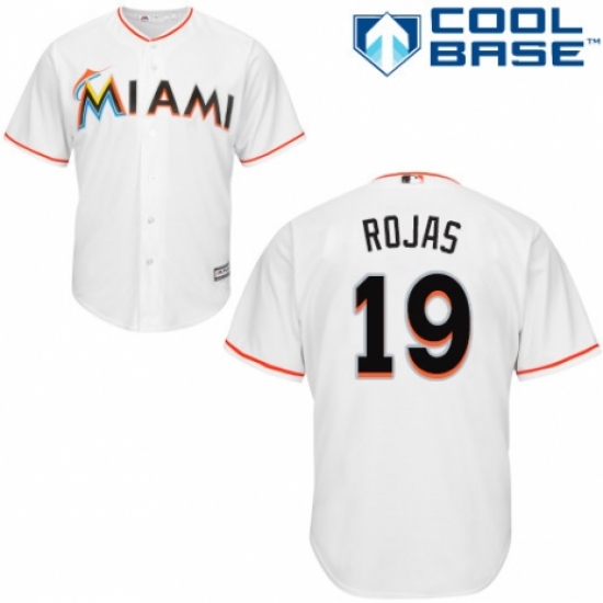 >Youth Majestic Miami Marlins #19 Miguel Rojas Authentic White Home Cool Base MLB Jersey