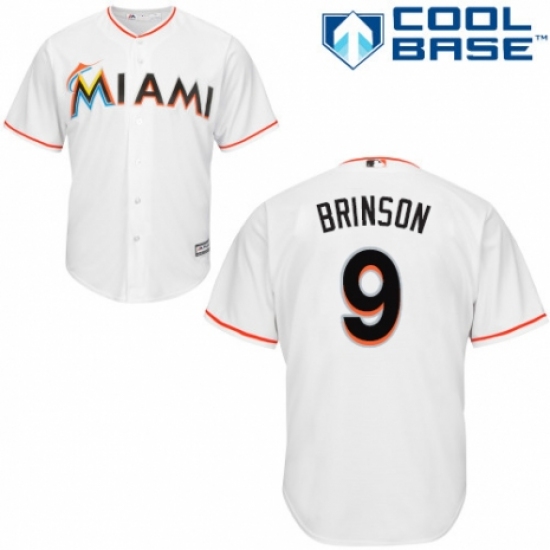 >Youth Majestic Miami Marlins #9 Lewis Brinson Replica White Home Cool Base MLB Jersey