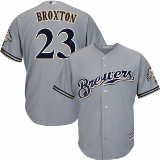 >Youth Majestic Milwaukee Brewers #23 Keon Broxton Replica Grey Road Cool Base MLB Jersey