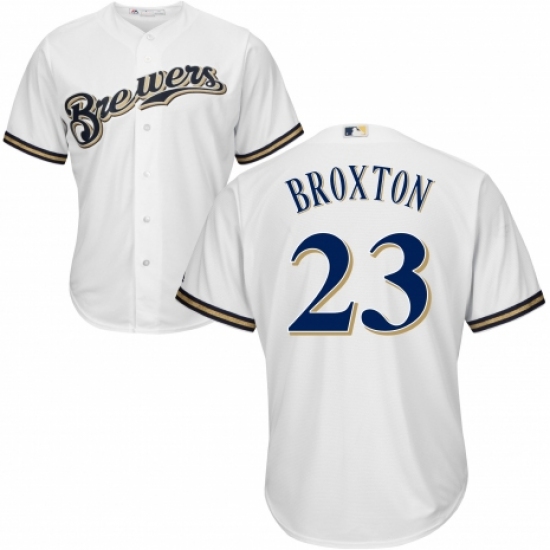Youth Majestic Milwaukee Brewers #23 Keon Broxton Replica White Alternate Cool Base MLB Jersey