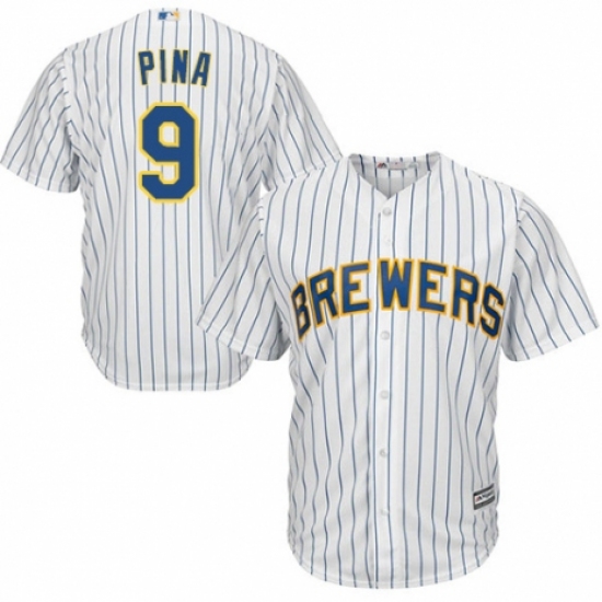 >Youth Majestic Milwaukee Brewers #9 Manny Pina Authentic White Home Cool Base MLB Jersey