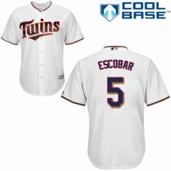 >Youth Majestic Minnesota Twins #5 Eduardo Escobar Replica White Home Cool Base MLB Jersey