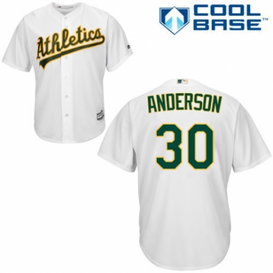 >Youth Majestic Oakland Athletics #30 Brett Anderson Replica White Home Cool Base MLB Jersey