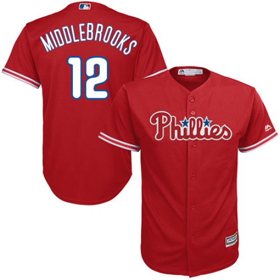 Home>MLB>Philadelphia Phillies>Will Middlebrooks>Youth Majestic Philadelphia Phillies #12 Will Middlebrooks Authentic Red Alternate Cool Base MLB Jersey