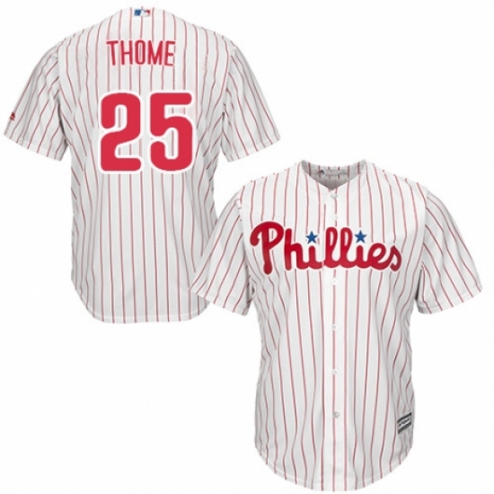 Youth Majestic Philadelphia Phillies #25 Jim Thome Replica White/Red Strip Home Cool Base MLB Jersey