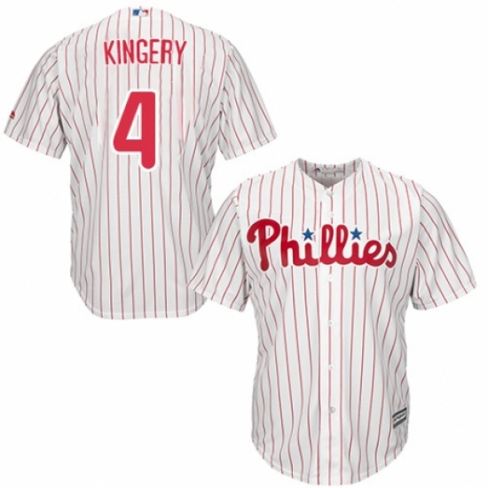 >Youth Majestic Philadelphia Phillies #4 Scott Kingery Replica White/Red Strip Home Cool Base MLB Jersey