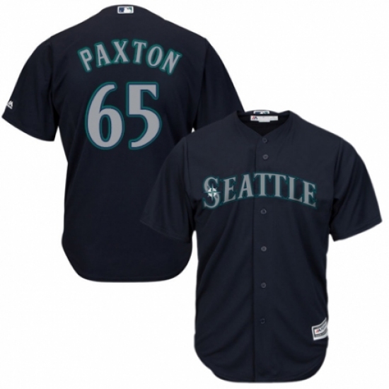 >Youth Majestic Seattle Mariners #65 James Paxton Authentic Navy Blue Alternate 2 Cool Base MLB Jersey