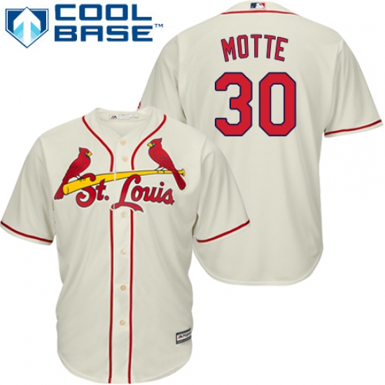 Home>MLB>St. Louis Cardinals>Jason Motte>Youth Majestic St. Louis Cardinals #30 Jason Motte Replica Cream Alternate Cool Base MLB Jersey