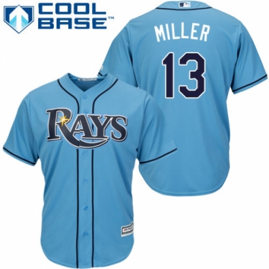 Youth Majestic Tampa Bay Rays #13 Brad Miller Authentic Light Blue Alternate 2 Cool Base MLB Jersey