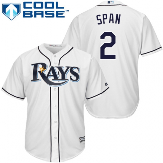 Youth Majestic Tampa Bay Rays #2 Denard Span Authentic White Home Cool Base MLB Jersey