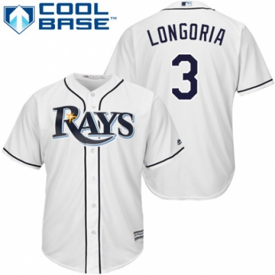 Men's Majestic Tampa Bay Rays #3 Evan Longoria Replica White Home Cool Base MLB Jersey