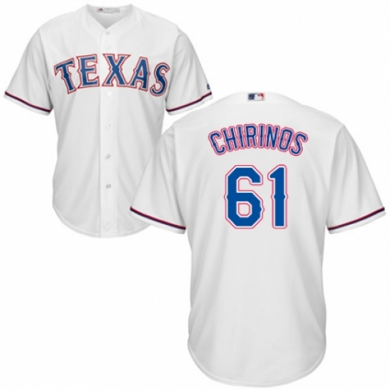 >Youth Majestic Texas Rangers #61 Robinson Chirinos Authentic White Home Cool Base MLB Jersey