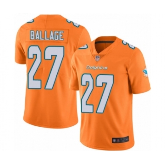 >Youth Miami Dolphins #27 Kalen Ballage Limited Orange Rush Vapor Untouchable Football Jersey