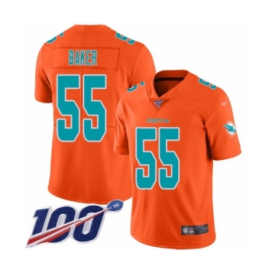 >Youth Miami Dolphins #55 Jerome Baker Limited Orange Inverted Legend 100th Season Football Jersey